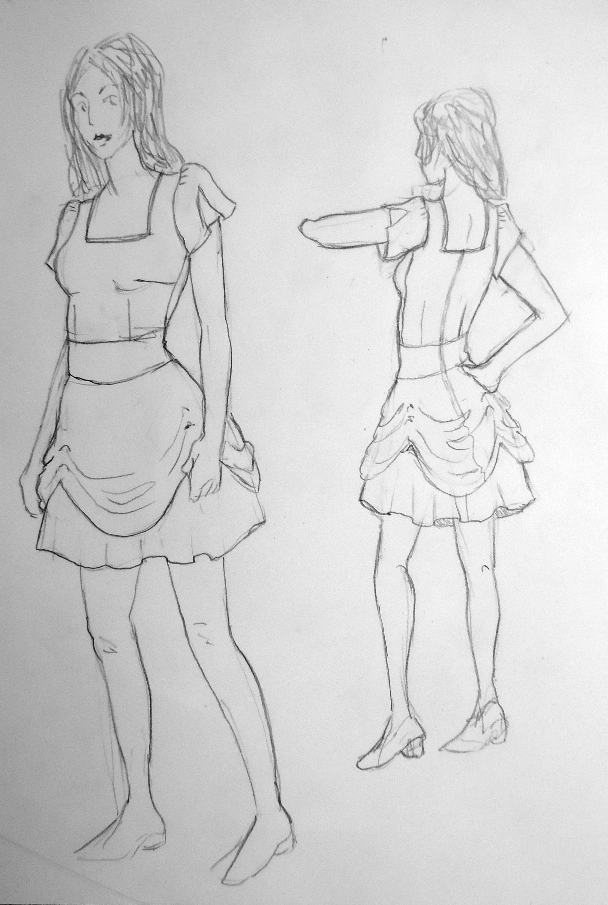 Pour passer le temps, j’ai refait le dessin de la robe à la lumière des concepts appris lors de l’Atelier Mod’Éthique: