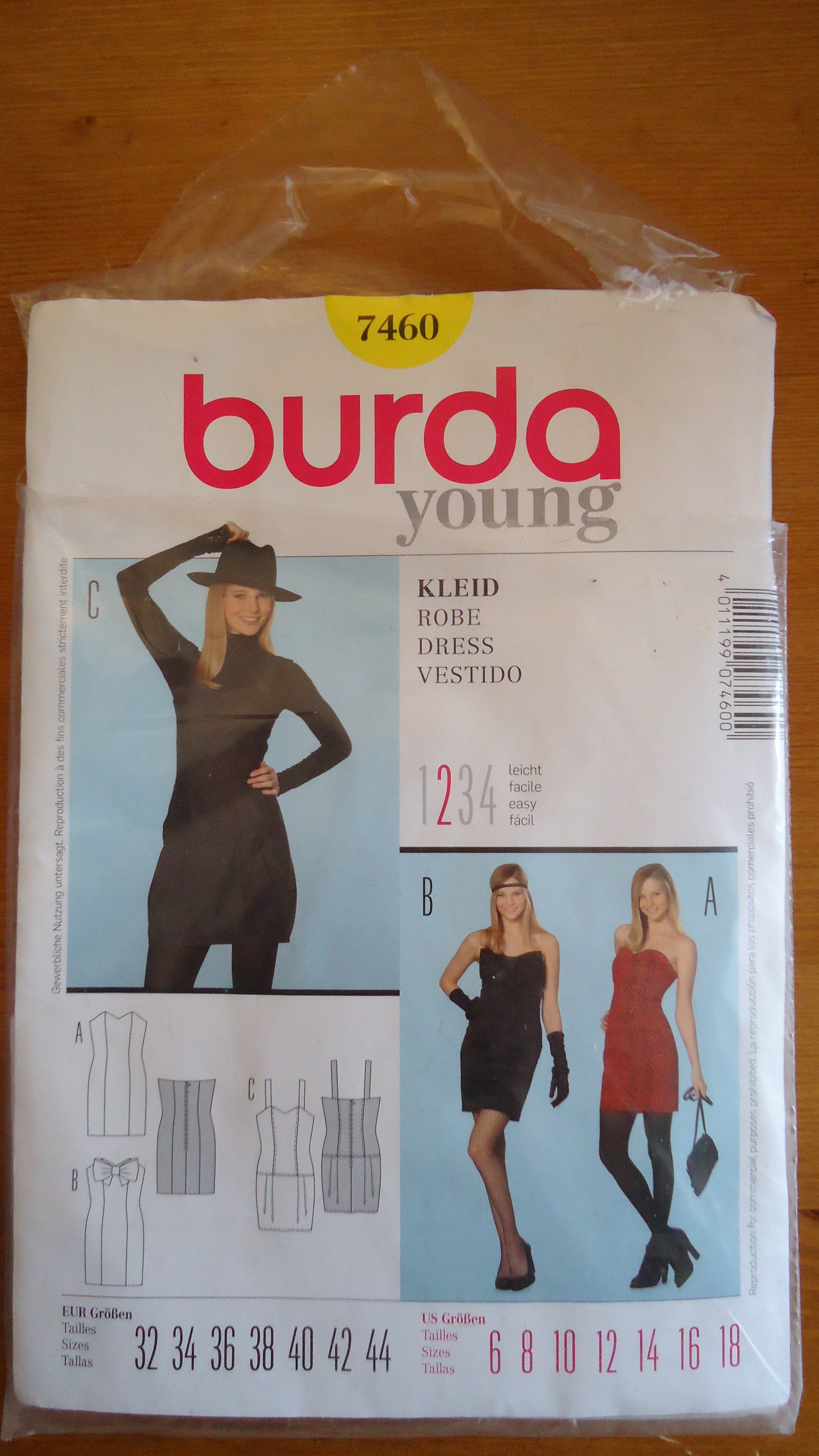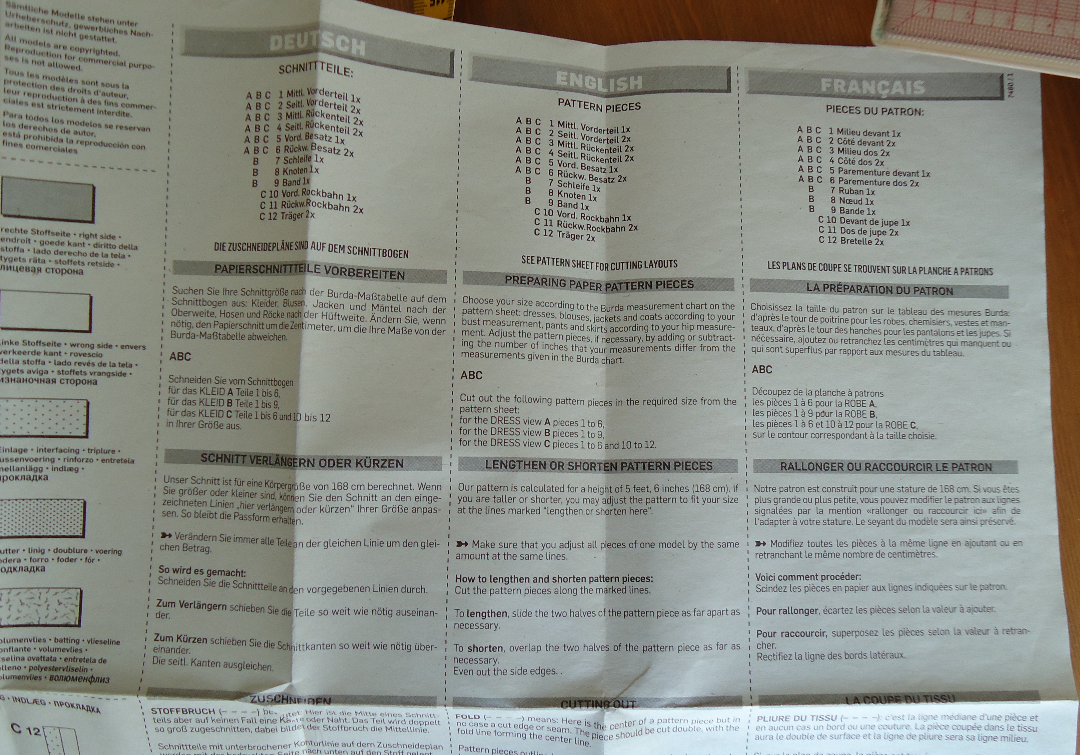Ma principal inspiration est venu de ce tutoriel (en anglais), qui – c’est facile à voir – est adapté à une robe de petite fille. Cela veut dire entre autre que la robe peut être enfilée par la tête sans aucune sorte de fermeture éclair, ce qui ne pourrait pas être le cas avec la mienne – au moins si je veux garder cette silhouette de sablier dont je m’enorgueillis. Mais j’aimais beaucoup cette jupe style « sac à papier« , ainsi que le fait d’avoir un haut en maille, qui embrasse la figure et est plus confortable pour tous les jours qu’un haut en tissu non-élastique plein de pinces et de plis.