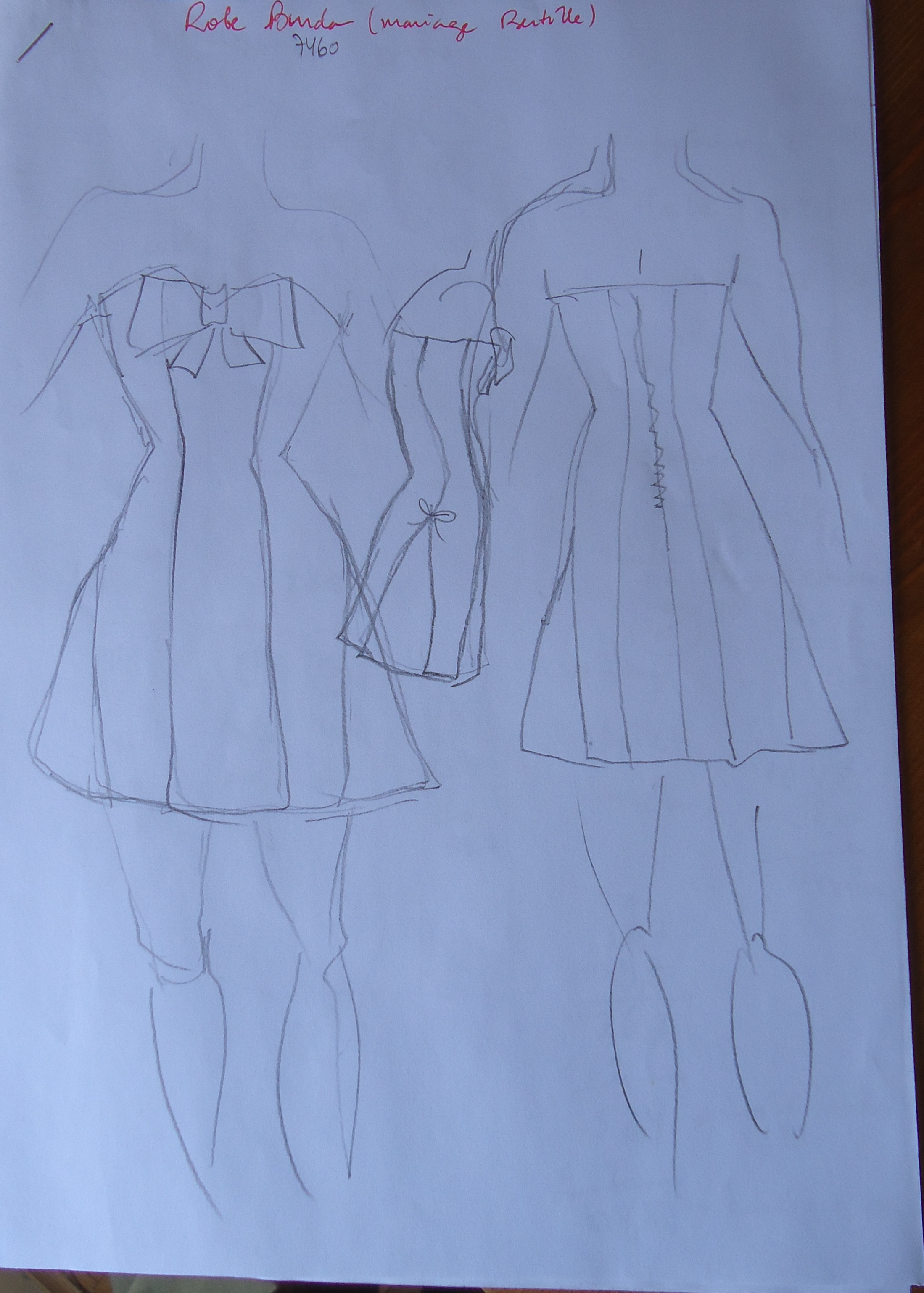 C’est peut-être honteux, et ce temps pourrait sans doute être mieux profité, mais je préfère le considérer comme un temps dédié à la construction d’une « mémoire de la couture » dans mon inconscient. Je ne sauve pas tout ce que je vois sans penser, mais juste ce qui peut m’intéresser et que je pourrais vraiment porter dans la vraie vie; ces idées restent au fond de ma tête et, comme le vin, elles fermentent, se combinent, prennent une vie mentale avant d’éclore par mes mains. C’est ce processus qui m’a permis récemment de pondre cette sympathique robe de célébration du printemps: