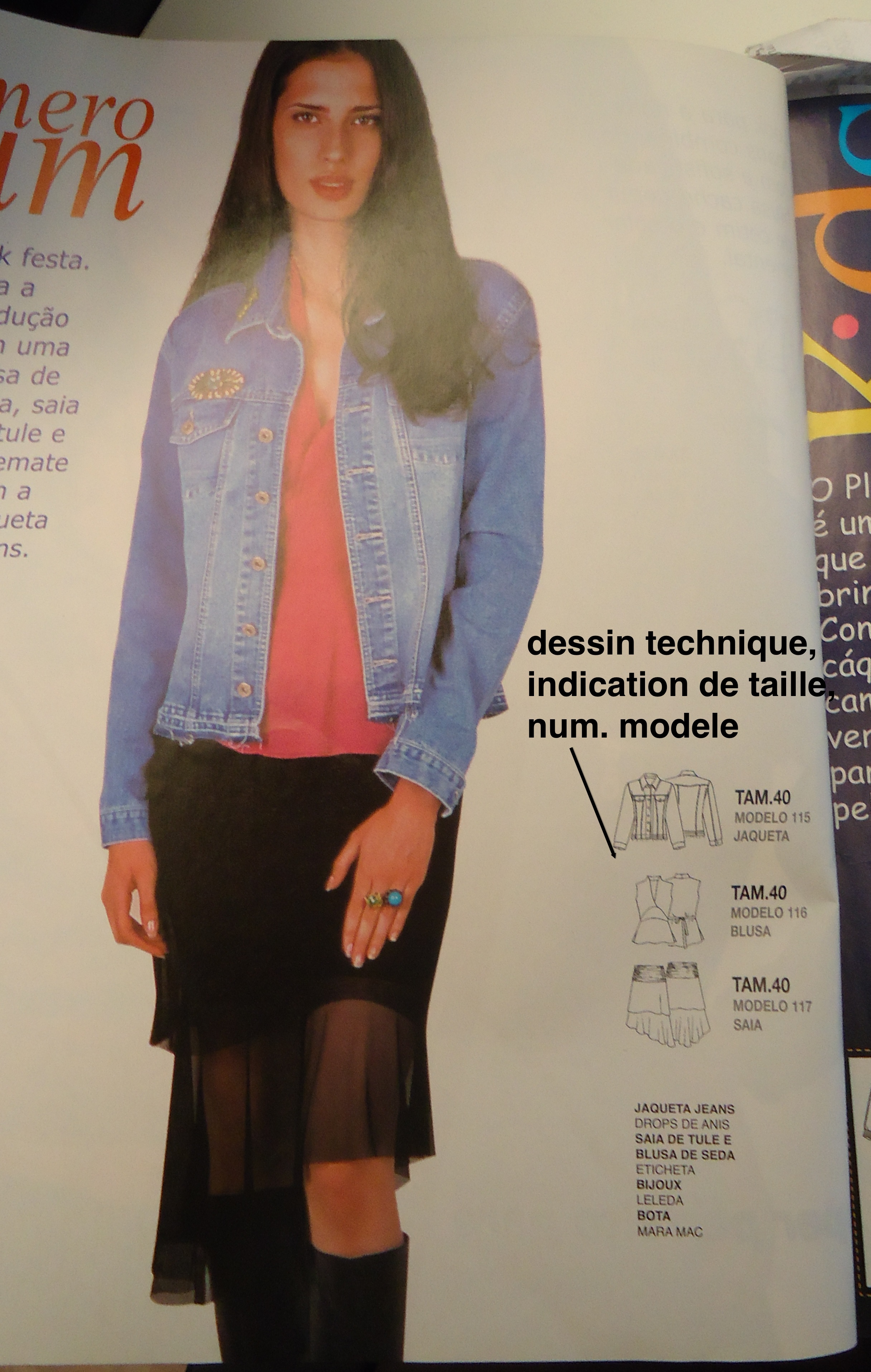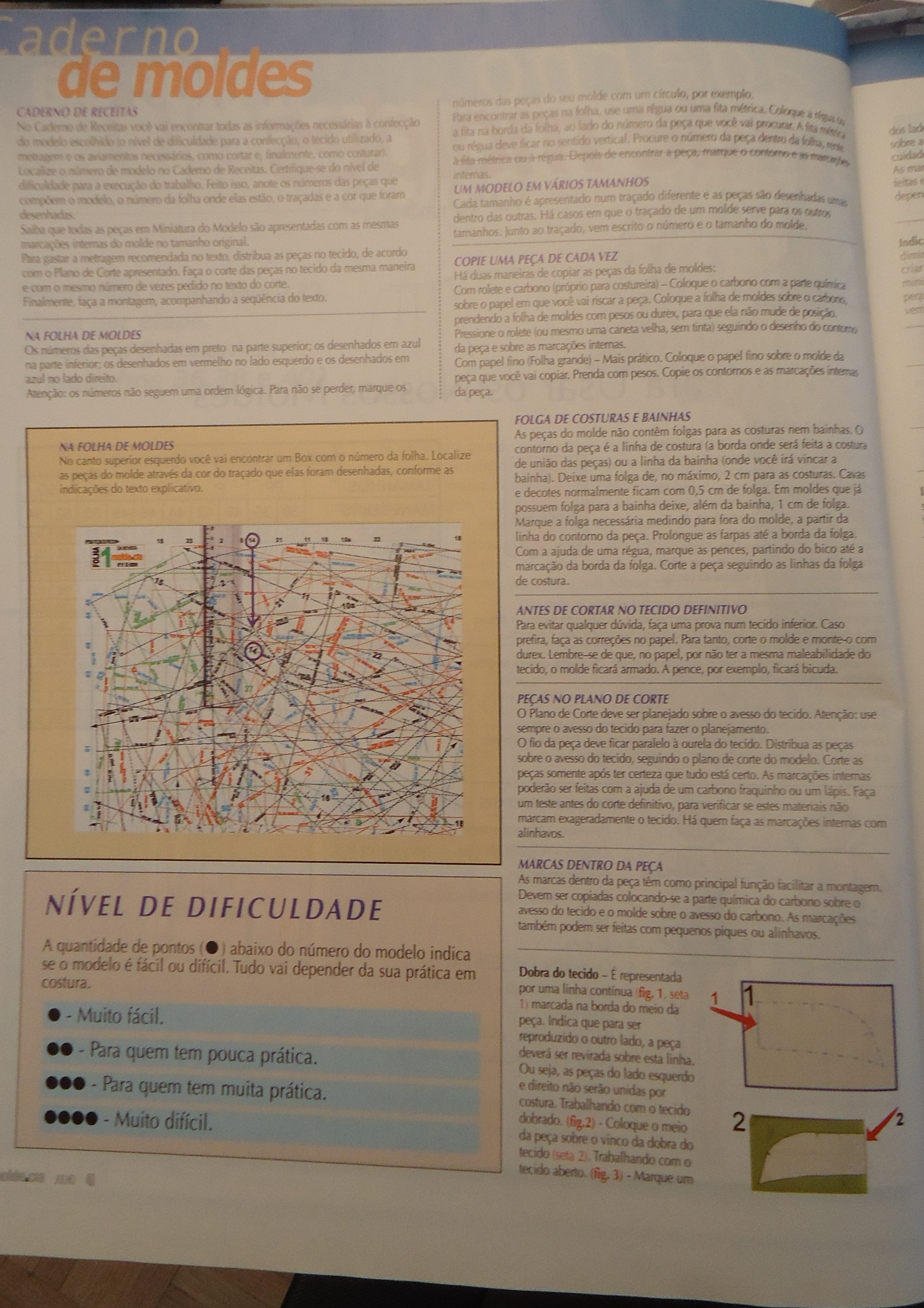 Je dois avouer que je ne m’y connais pas énormément là-dessus, possédant juste trois pauvres revues de ce type achetées au Brésil et qui ne m’ont jamais servi à grand-chose car les modèles qu’il y a dedans ne sont pas géniaux à mon goût (j’ai acheté le paquet fermé avec les 3 revues en me disant qu’il y aurait bien quelque chose de profitable là-dedans !). Mais ayant déjà feuilleté des revues françaises comme Burda, j’ai constaté que ce n’est pas très différent et je pense m’y connaitre assez pour donner mon opinion non-sollicitée 😉