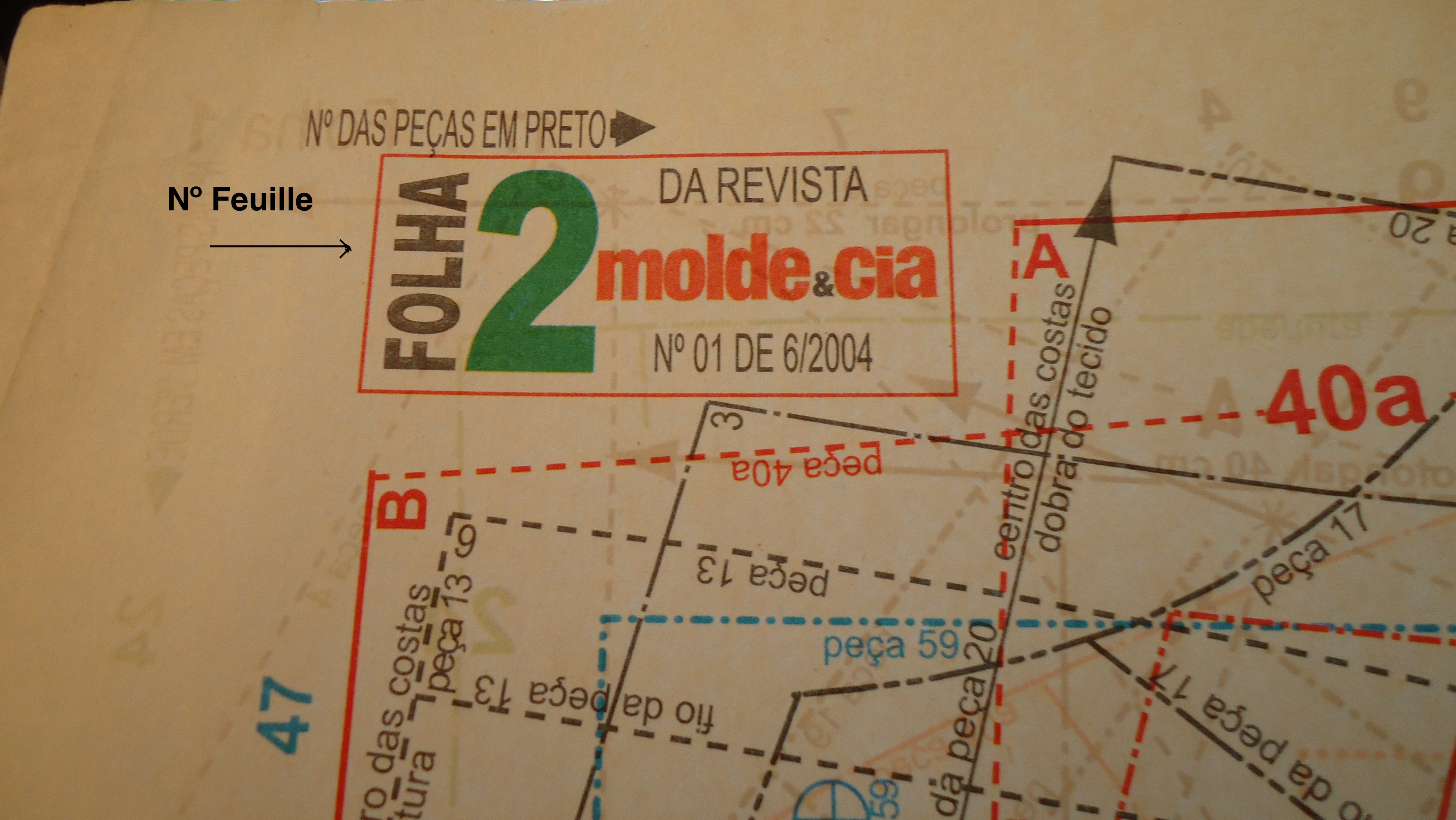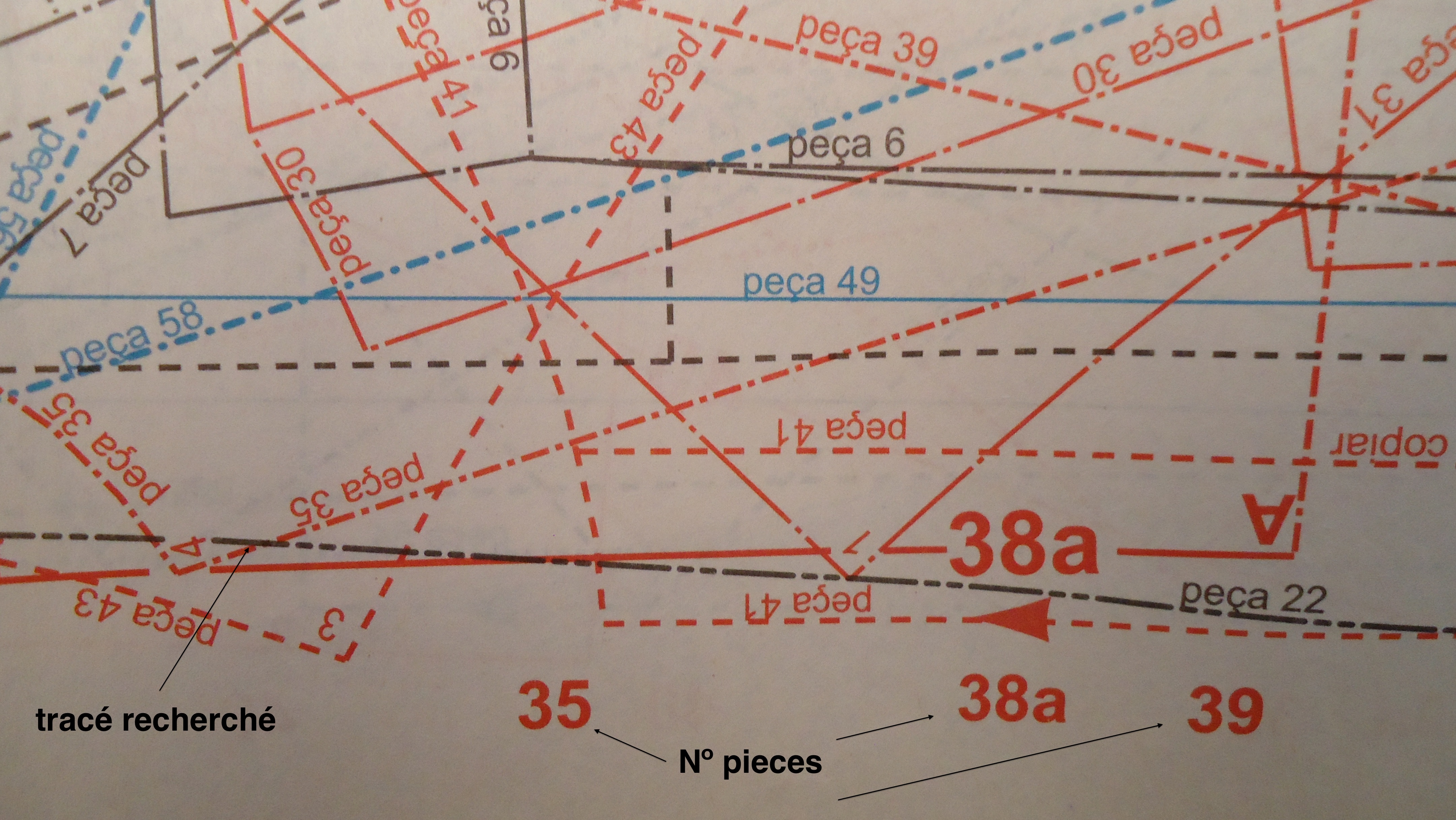 Ensuite nous avons le numéro des pièces à chercher sur la feuille à patron (35 à 39), le type du tracé (_._._.) et le numéro de la feuille (feuille 2). Ça semble cryptique mais tout cela peut être résumé à ça: