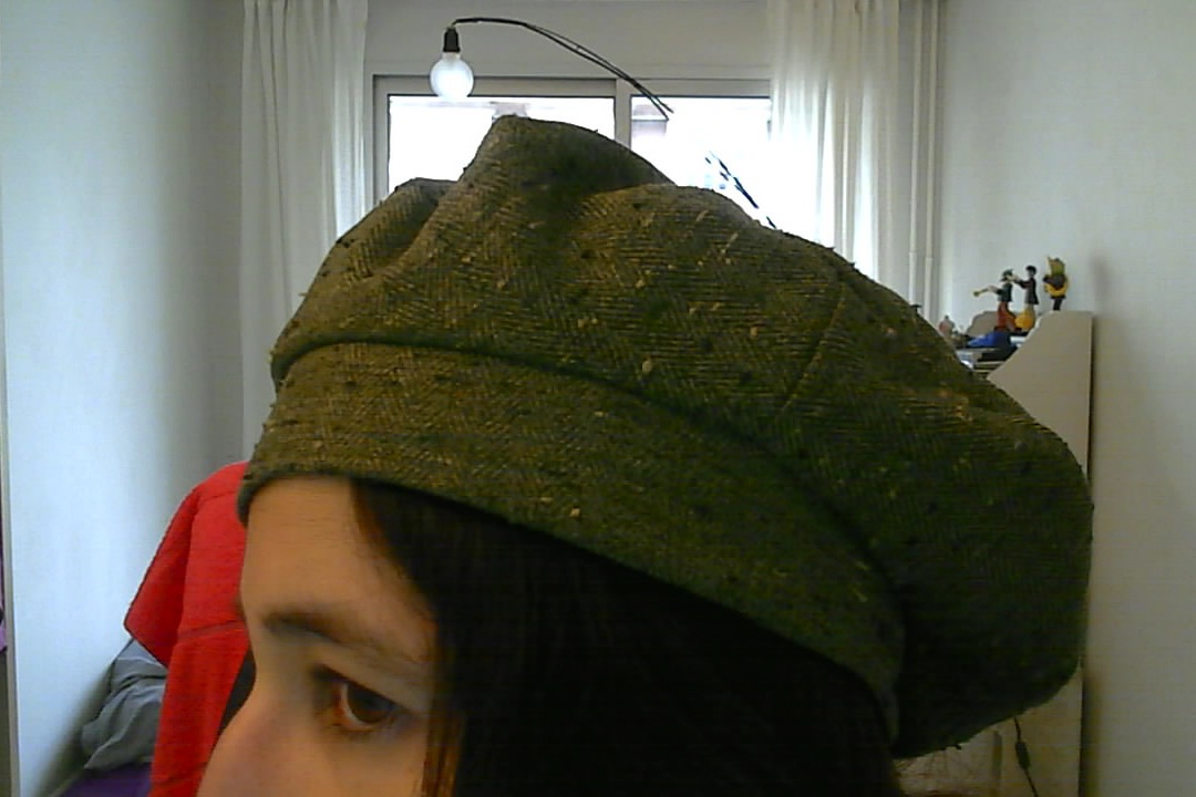 C’est un chapeau simple style béret basque, réalisé ici en tweed (mais on peut choisir le tissu qu’on veut) et entièrement doublé. Je l’ai fait à partir de ce tutoriel (en anglais) d’annekata, dont voici ma version: