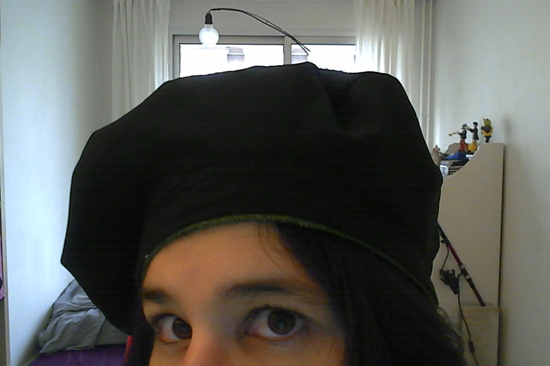 Le chapeau peut aussi être laissé sans aucune décoration, bien sur… Mais c’est sympa d’avoir un truc distinctif, je trouve. Mon noeud papillon m’a aussi servi à cacher la couture sur la bande.