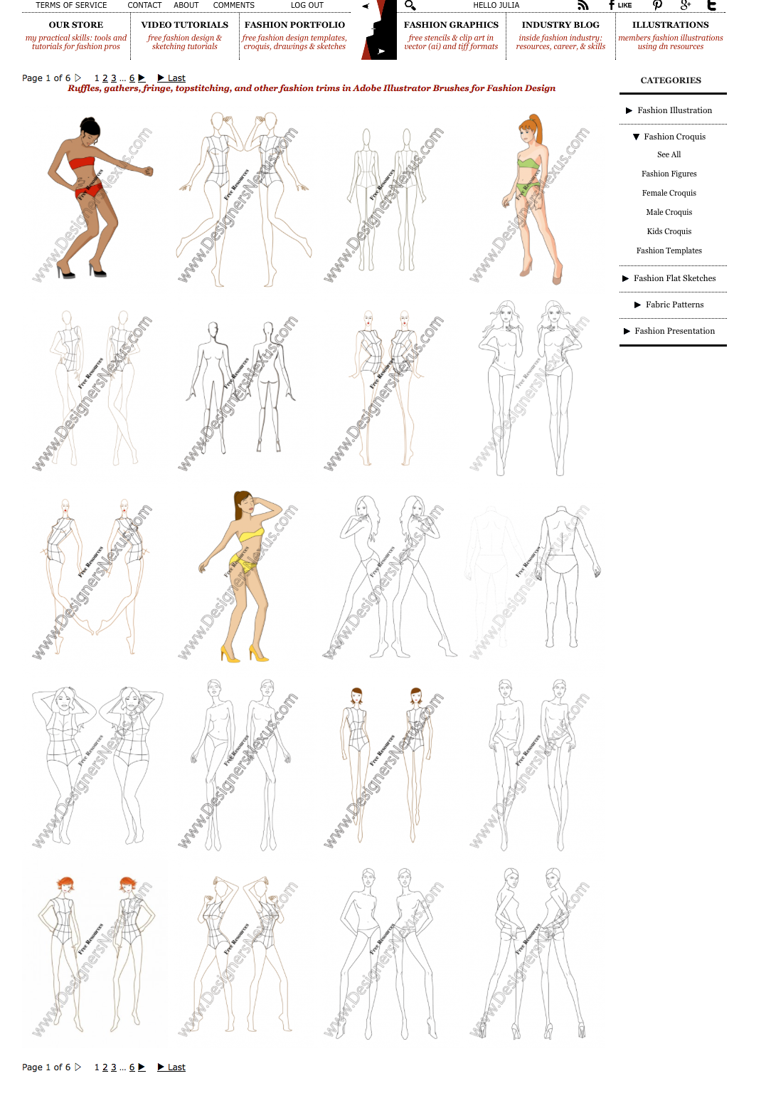 Dans mes stats je vois souvent des gens qui finissent dans ce blog après avoir cherché des figurines pour des croquis de mode. Et bien, ne cherchez plus – vous pouvez en télécharger des centaines à cout zéro chez Designer Nexus, qui propose aussi plein d’autres ressources pour vos créations de mode numériques… Il suffit de créer un compte gratuit pour avoir accès à tout ça.