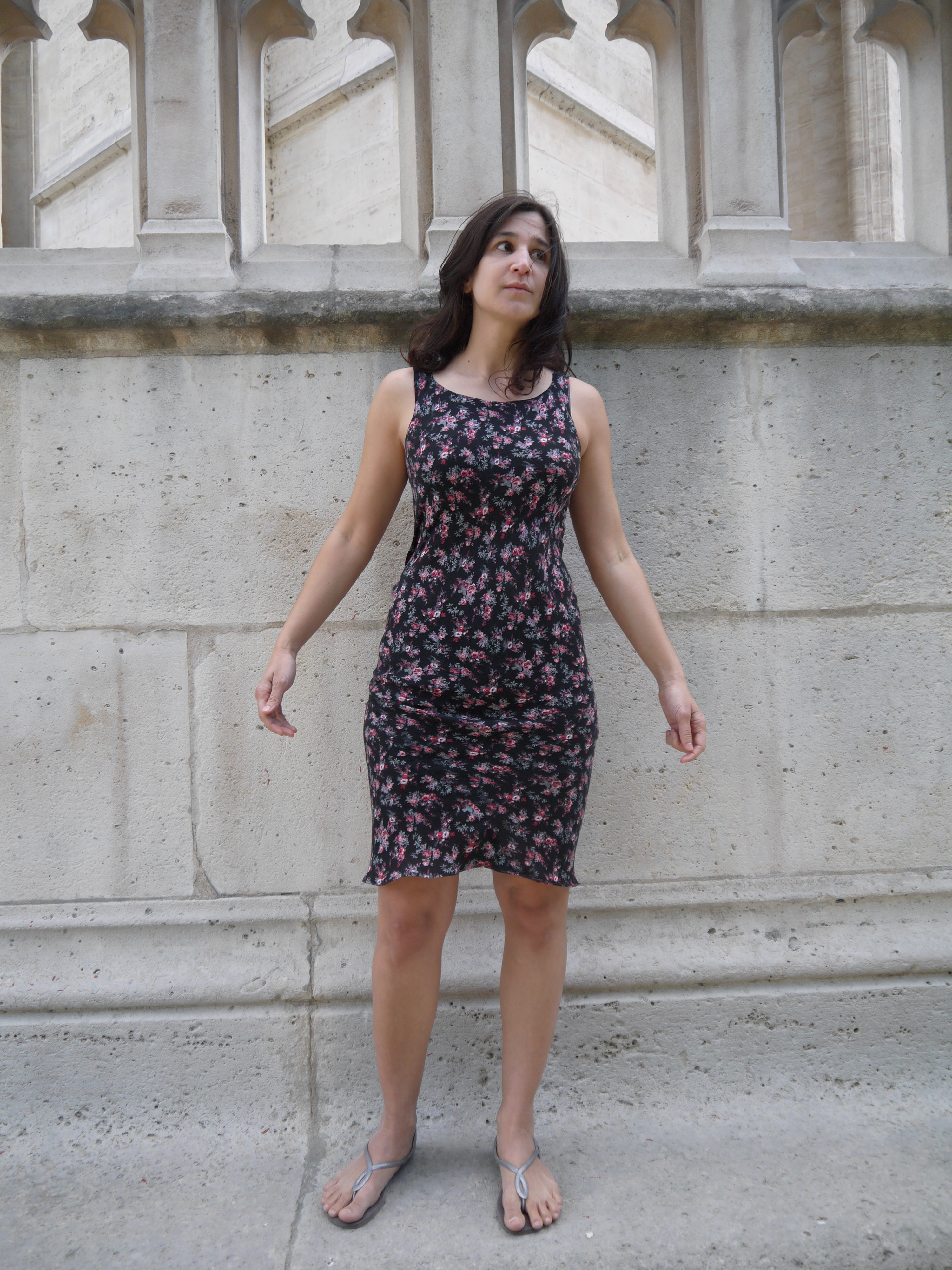 Je vous avais montré, il y a quelques mois, la robe coupée dans le biais du livre Pattern Cutting – Eh bien, j’ai finalement pu avoir quelques images de moi-même dedans, grâce à ma copine Laura (merci encore!).