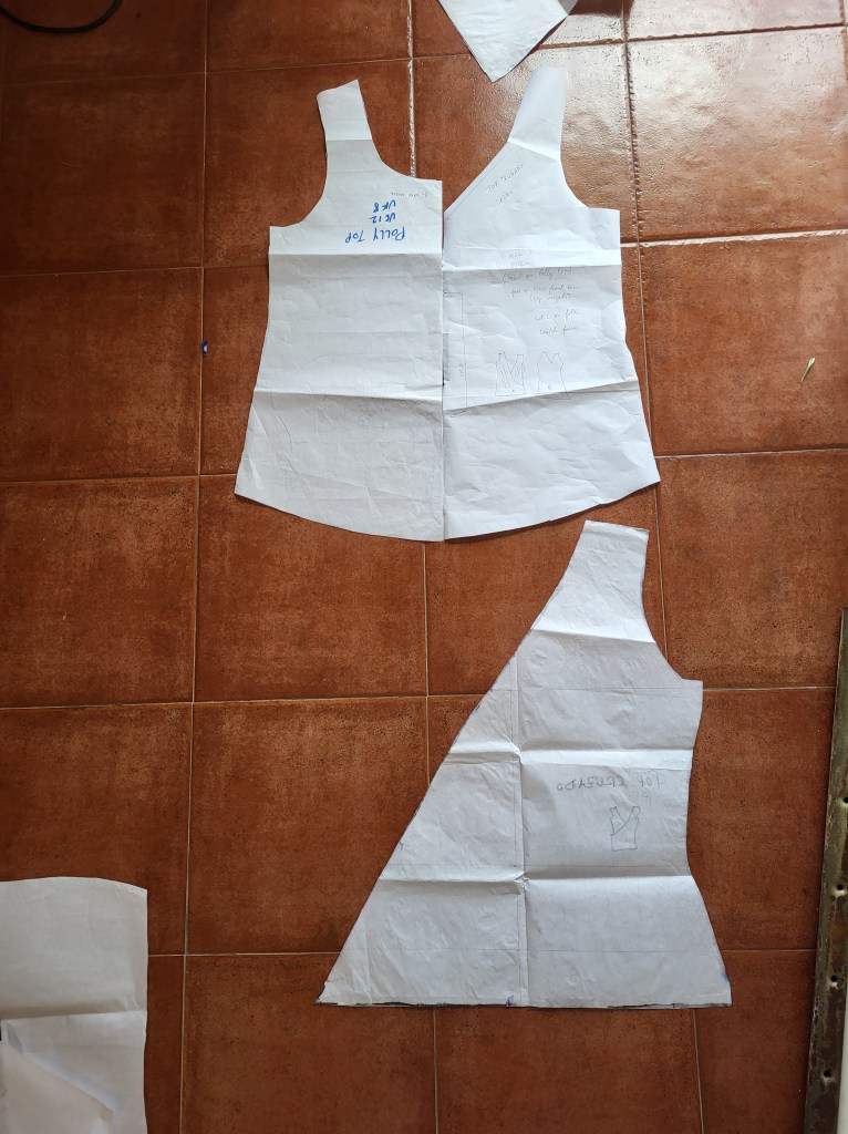Je suggère, bien sûr, d’essayer d’abord le patron tel quel pour être sûr que ça convient à ton corps. Tu peux aussi utiliser un de tes débardeurs pour tracer un patron.